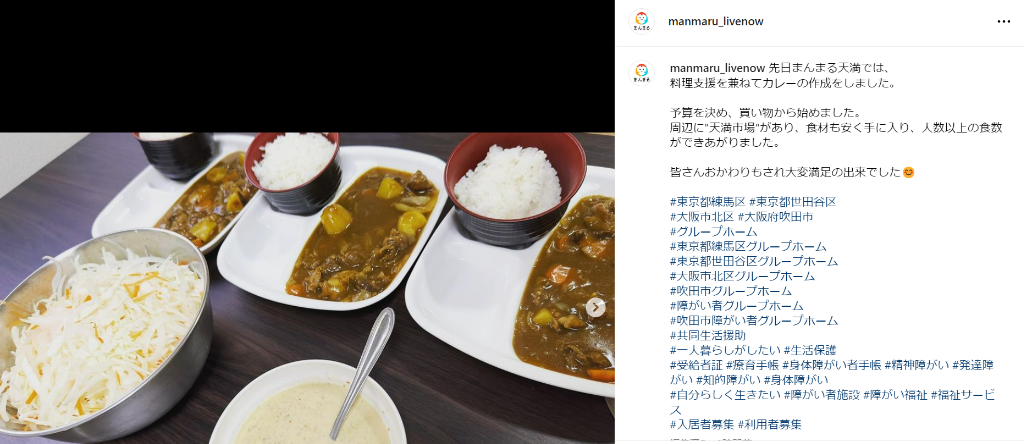 先日実施した料理支援についての内容をInstagramに掲載いたしました。